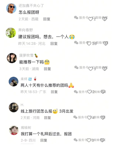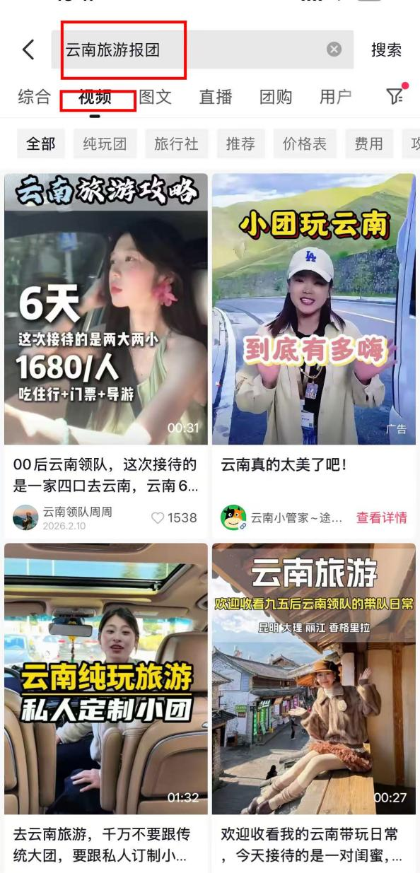 🎯 目的: 在云南旅游相关视频的评论区,挖掘近期有明确需求的用户,通过「评论互动」吸引更多潜在客户看到我们的留言,点击@的领队账号,主动联系我们。